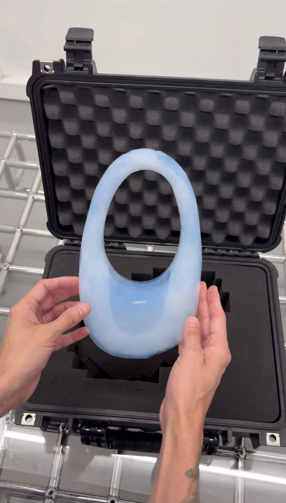 Aerojel; gözenekli, düşük yoğunluklu ve dokunulduğunda katı olarak algılanan bir malzeme. Coperni, FW24 şovu sırasında tanıtılan çantanın kullanılabilirliğiyle ilgili detayları henüz açıklamadı. Tek açıklama, Air Swipe Bag’i yalnızca 33 gram ağırlığında olması. Ayrıca videoya bakılırsa, Air Swipe Bag bir koruma çantasının içinde muhafaza edliyor.