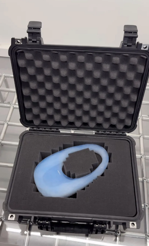 Çanta ilk bakışta sisli bir görünüme; bir yerde sıkışıp kalmış bulutları andıran bir görselliğe sahip. Son derece hafif ve aynı zamanda da çok kırılgan görünüyor. Oysa çantanın malzemesi olan nanomateryal silika aerojel, son derece hassas ancak kırılgan olmayan bir nanomateryal. 1.200 santigrat dereceye kadar aşırı ısıya ve ağırlığının 4000 katı basınca dayanabildiğinden, NASA bu malzemeyi 1999 yılında Dünya’ya bir kuyruklu yıldızdan örnekler getiren ilk uzay aracı olan Stardust’ta kullanmış.