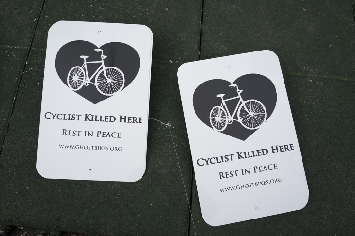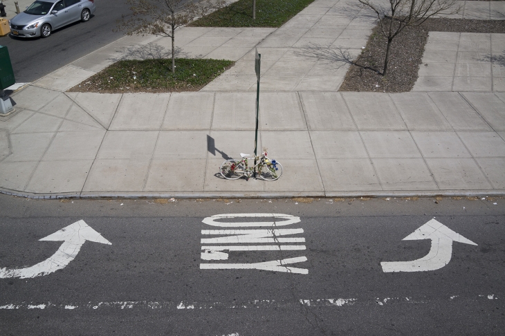 Hayalet Bisikletler, New York ve dünyanın 200’den fazla şehrinde, tabela veya yol kenarındaki tel örgülere zincirlenmiş, gösterişten uzak bir şekilde duruyor ve sessizce uyarıyorlar: Yavaş ve güvenli gidin, diğer sürücülere ve yayalara saygı gösterin.