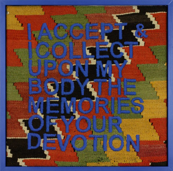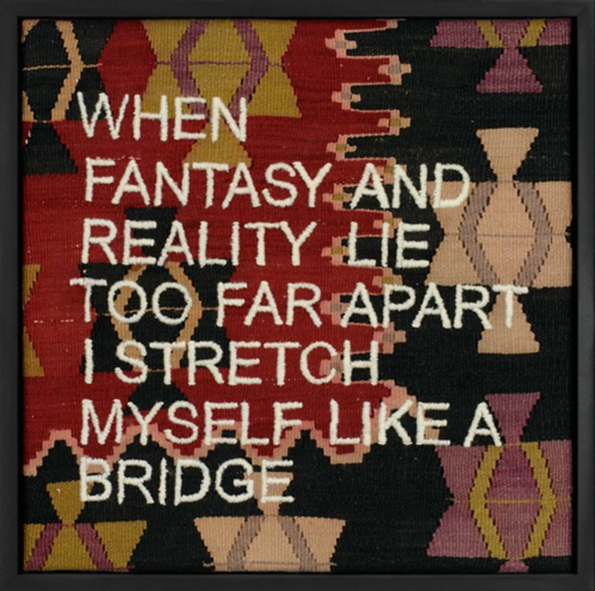 Kimi sanatçılar yaratıcılıklarını tuval dışında bir yere aktarmayı tercih ediyorlar. Faig Ahmed halıların üzerine dijital bozulma görüntülerini yansıtmıştı. Selma Alaçam da buna başka bir örnek teşkil eden isimlerden biri. Sanatçı Heartstrings ismini verdiği çalışmasında favori şarkılarının sözlerinin bir kısmını kilimlere işliyor. Fiona Apple gibi sanatçıların ve Depeche Mode gibi müzik gruplarının şarkılarından sözlerin yer aldığı kilimler güzel bir albüm kapağı gibi görünüyor.
