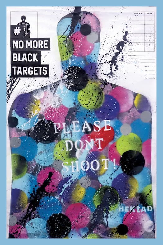 İstatistiklere göre Amerika’da genç siyah erkeklere yönelik şiddet artışta. Beyaz erkeklere göre siyah bir erkeğin eğitimli nişancılar ve polis tarafından vurulma olasılığı 3 kat daha fazla. Çeşitli araştırmalara göre ırk ve hedefin vurulması arasında bir korelasyon görülebiliyor. Göze çarpan bir “tesadüf” de atış eğitimleri sırasında kullanılan hedef tahtalarının siyah bir silüet olması. Bu sanat projesi de silah kullanmanın öğretildiği her yerde kullanılan bu simsiyah hedef tahtasını yok etmeyi amaçlıyor. Tehdit edici ve vurulması gereken “siyah” bir figür yerine siyah insanlara yönelik önyargıları bu kadar kör göze parmak şekilde beslemeyecek başka bir form koymayı hedefliyor.
