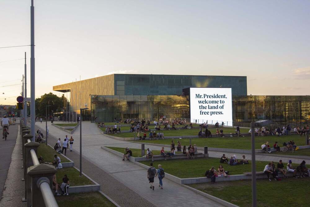 Daha önce de TBWA\Helsinki imzasıyla Helsingin Sanomat için hazırlanan bir diğer açık hava kampanyası The Land of Free Press de oldukça gündem konusu olmuştu. Kampanya görselleri, ABD Başkanı Donald Trump ve Vladimir Putin’in Helsinki Zirvesi’nde bir araya geldiği gün, geçiş güzergahlarındaki dev ekranlarda yayınlanmıştı. İki başkanın gazetecilere ve medyaya olan baskısına mesaj göndermek için yaratılan kampanya, beyaz arka plan üzerine siyah renkte bir metinden oluşuyordu.