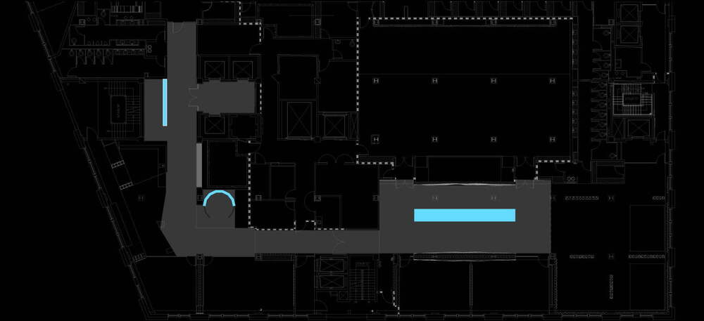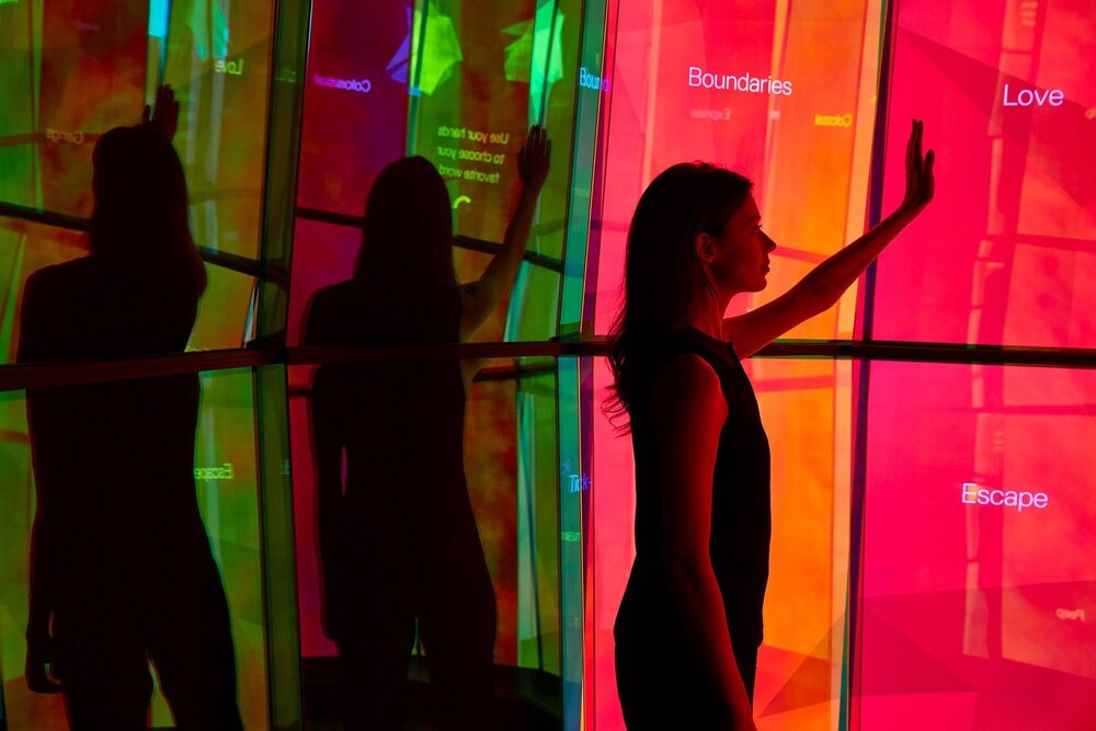 The Passage kısmı üç parçalı dijital yerleştirmenin ilk kısmını meydana getiriyor. Burada ziyaretçiler renklerden oluşan ekranın karşısında hareket ve jestleriyle etkileşime geçiyorlar. Ziyaretçiler vücutlarının verilerini fiziksel ışık katmanları olarak deneyimliyorlar. The City Cave ise ziyaretçileri ses ve hareket verilerinin görselleşmelerini deneyimleyecekleri 360 derecelik bir yolculuğa çıkarıyor. Kişiler burada ekrandaki sorulara jestlerle ve sesle cevap verebiliyor. Veriler kişinin seçtiği yöntemle göre şekilleniyor. Kişiler burada ellerinin hareketleriyle favori kelimelerini seçiyorlar ve böylece renkli düşük-poligonlardan oluşan kombinasyonlar ekrana geliyor. Son olarak da ziyaretçiler The Skywalk’ı deneyimliyorlar. Adı gibi ziyaretçinin üzerinde yani havada bir ekranda deneyimleniyor bu kısım. Kişinin Deep City’de geçirdiği zaman boyuncaki tüm hareketlerinin verisini görselleştiren The Skywalk, ziyaretçinin tüm hareketlerinin nasıl bir renk cümbüşüne dönüştüğünü gösteriyor.