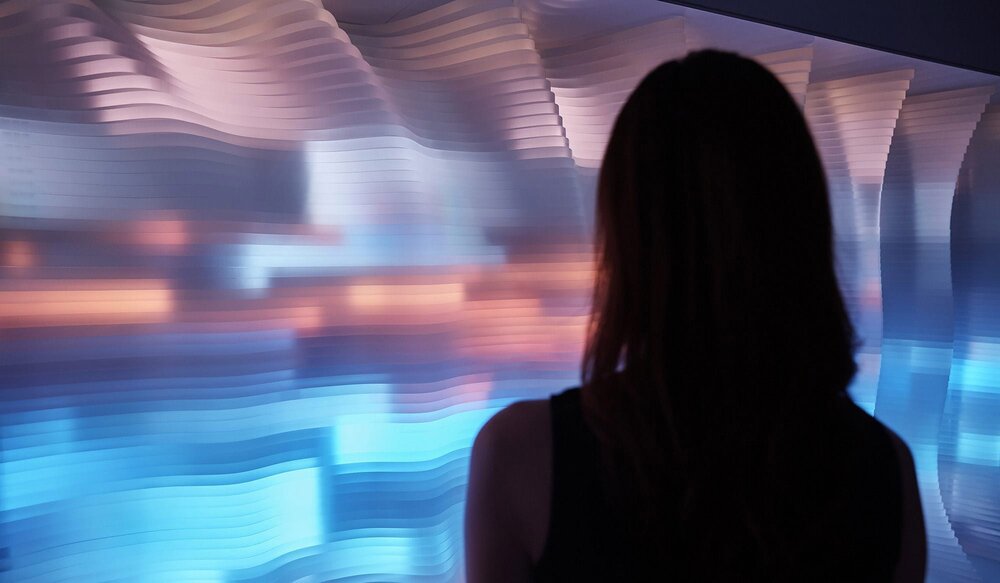 Deep City tüm vücudumuzun, hareketlerimizin ışık ve renk oyunlarına dönüşmesini çok etkileyici bir şekilde aktarıyor. Her ne kadar kompleks varlıklar olsak da bu yerleştirme gösteriyor ki aslında tüm verilerimizin çıktısı ışık ve renk oluyor günün sonunda.
