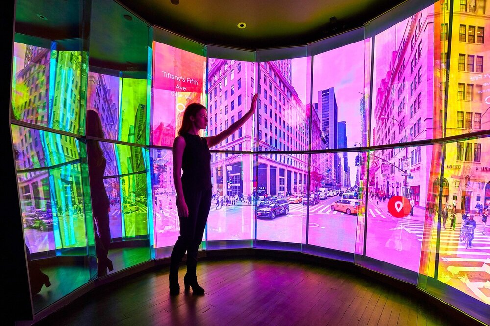 Dünyayla etkileşime girdiğimizde milyonlarca veri noktası oluşturuyoruz. Google da bunu en iyi bilen şirket olduğu için, bizlere bunu daha etkileyici bir şekilde deneyimletmeyi amaçlıyor. Deep City, Google’ın küresel teknoloji bürosu olan New York merkez binası için HUSH tarafından tasarlandı. HUSH’ın tasarladığı dijital deneyim üç kısımdan oluşuyor: The Passage, City Cave ve The Skywalk. Tasarlanan üç kısmı merkez binaya kurmak için HUSH’ın tasarımcı ekibi ve Google iş birliği yaptı. Üç kısımda da ziyaretçilerin orada bulundukları süre boyunca yerleştirmeler jestlerini, hareketlerini ve seslerini kaydediyor. Kaydedilen bu veriler sonrasında ziyaretçilerin oradaki yolculuğunu anlık olarak bilgilendirici ve sanatsal bir kayda dönüştürüyor. Ortaya çıkan renkli görüntülerse gerçekten insanı hayran bırakıyor.