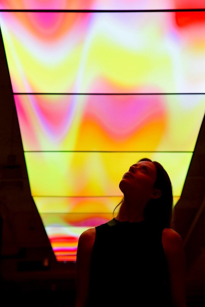 Deep City tüm vücudumuzun, hareketlerimizin ışık ve renk oyunlarına dönüşmesini çok etkileyici bir şekilde aktarıyor. Her ne kadar kompleks varlıklar olsak da bu yerleştirme gösteriyor ki aslında tüm verilerimizin çıktısı ışık ve renk oluyor günün sonunda.