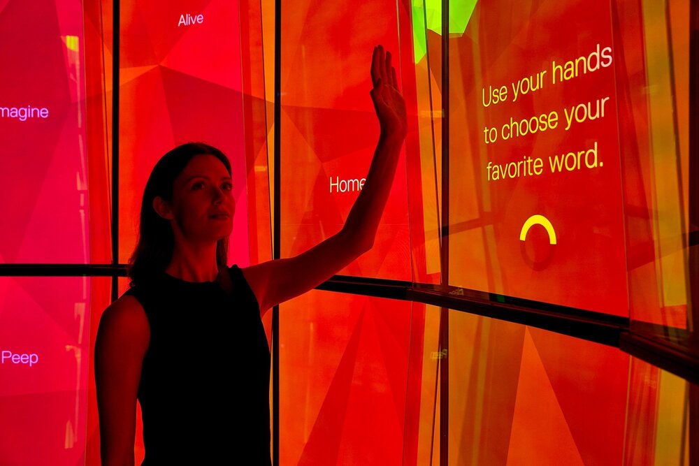 Dünyayla etkileşime girdiğimizde milyonlarca veri noktası oluşturuyoruz. Google da bunu en iyi bilen şirket olduğu için, bizlere bunu daha etkileyici bir şekilde deneyimletmeyi amaçlıyor. Deep City, Google’ın küresel teknoloji bürosu olan New York merkez binası için HUSH tarafından tasarlandı. HUSH’ın tasarladığı dijital deneyim üç kısımdan oluşuyor: The Passage, City Cave ve The Skywalk. Tasarlanan üç kısmı merkez binaya kurmak için HUSH’ın tasarımcı ekibi ve Google iş birliği yaptı. Üç kısımda da ziyaretçilerin orada bulundukları süre boyunca yerleştirmeler jestlerini, hareketlerini ve seslerini kaydediyor. Kaydedilen bu veriler sonrasında ziyaretçilerin oradaki yolculuğunu anlık olarak bilgilendirici ve sanatsal bir kayda dönüştürüyor. Ortaya çıkan renkli görüntülerse gerçekten insanı hayran bırakıyor.
