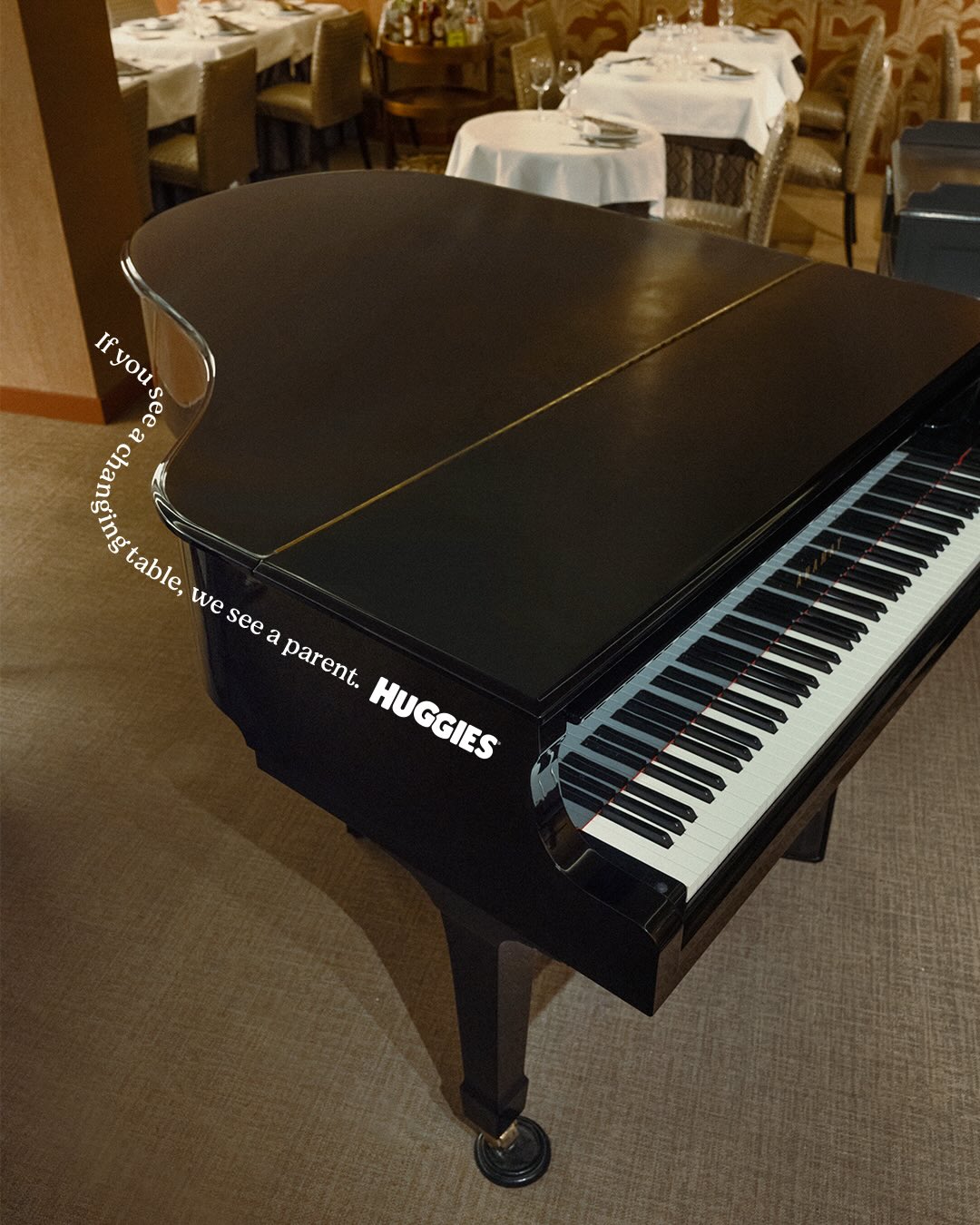 Kampanyanın merkezinde yer alan görsellerde, bir piyano, bilardo masası, çamaşır makinesinin üstü ve pinpon masası gibi farklı yüzeyler yer alıyor. İlk bakışta bu objeler kendi bağlamlarında sıradan görünse de, üzerlerine yerleştirilen “if you see a changing table we see a parent” (sen bir alt değiştirme masası görüyorsan, biz bir ebeveyn görüyoruz) mesajı, izleyiciye farklı bir bakış açısı sunuyor. Bu yaklaşım, özellikle bebekli ebeveynlerin, uygun bir alt değiştirme alanı bulamadıklarında çevrelerindeki her düz yüzeyi potansiyel bir çözüm olarak görmelerine gönderme yapıyor.