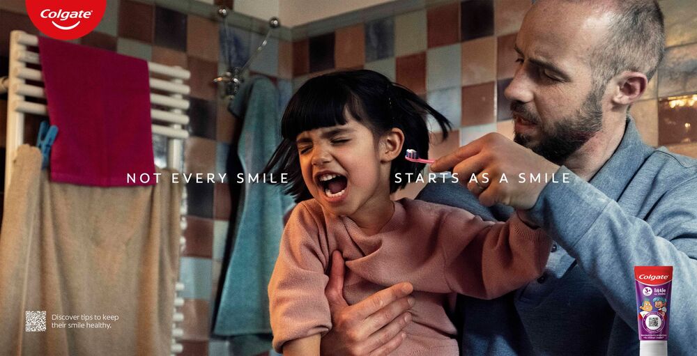 Bu incelikli konuyu ele alan Colgate, çocuklarının parlak gülümsemeleri için mücadele eden ebeveynlerin yanında yer almaya karar vermiş. Bu karar doğrultusunda onlara doğru ipuçlarıyla, araçlarla ve ürünlerle yardımcı olmayı da hedeflemiş. Kampanyada “her gülümseme bir gülümseme olarak başlamaz” (Not every smile starts as a smile) sloganı kullanılmış.