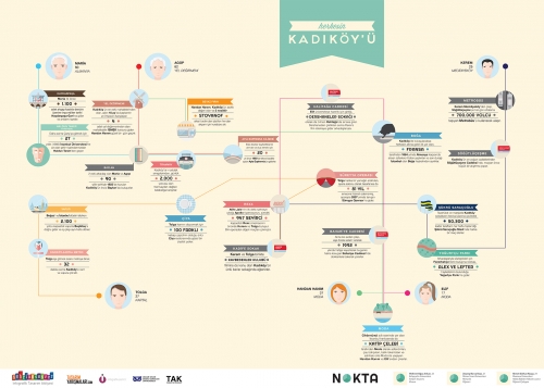 Bahçeşehir Üniversitesi VCD bölümü mezunu Mehmet Oğuz Arıkan ve arkadaşları,geçtiğimiz hafta sergisi yapılan Şehrine Ses Ver infografik atölyesi süresince Nokta grubu olarak, Kadıköy’ün önemli odak noktalarını ele alarak, semtin çeşitliliğini ve tarihini tekrar vurguladıkları, ele aldıkları noktalar hakkında akılda kalıcı bilgiler verdikleri, 6 farklı karakterin farklı rotalarını anlatan bir çalışma yapmışlar.