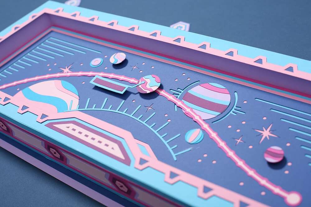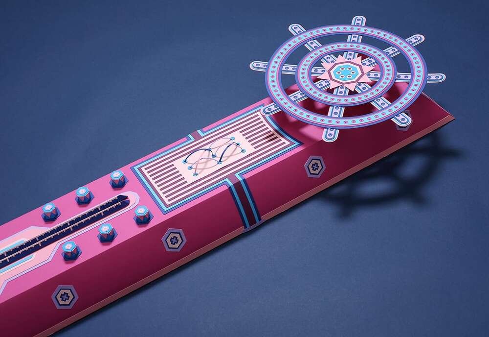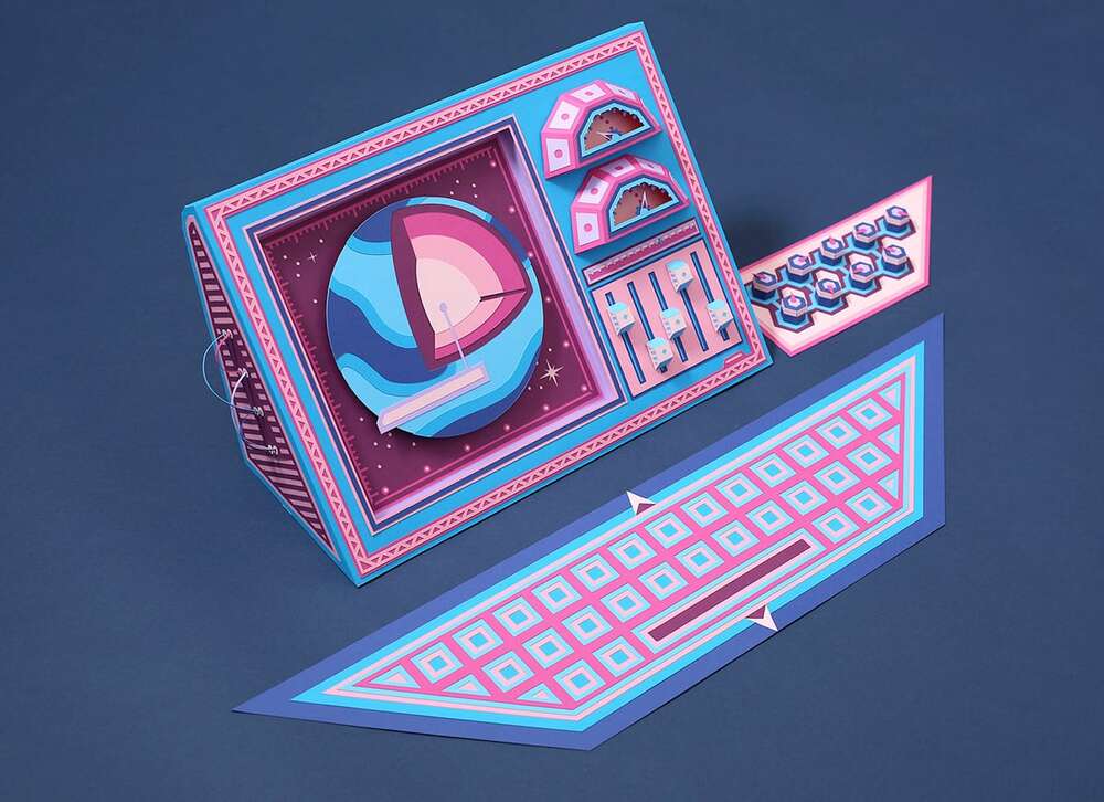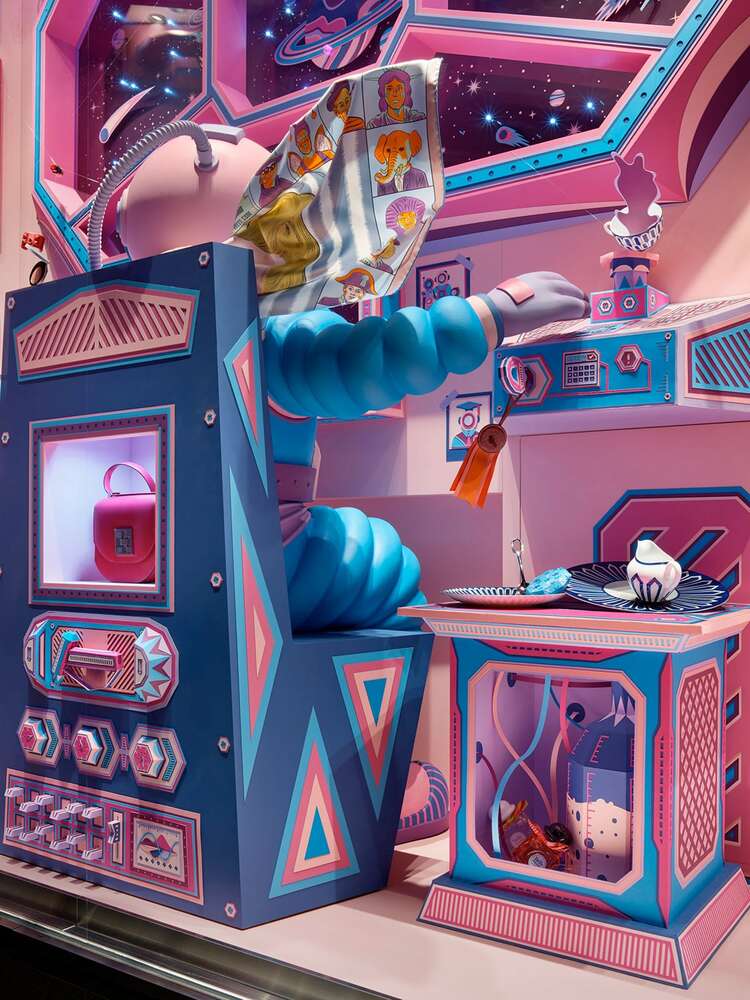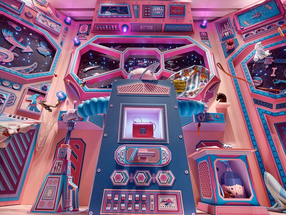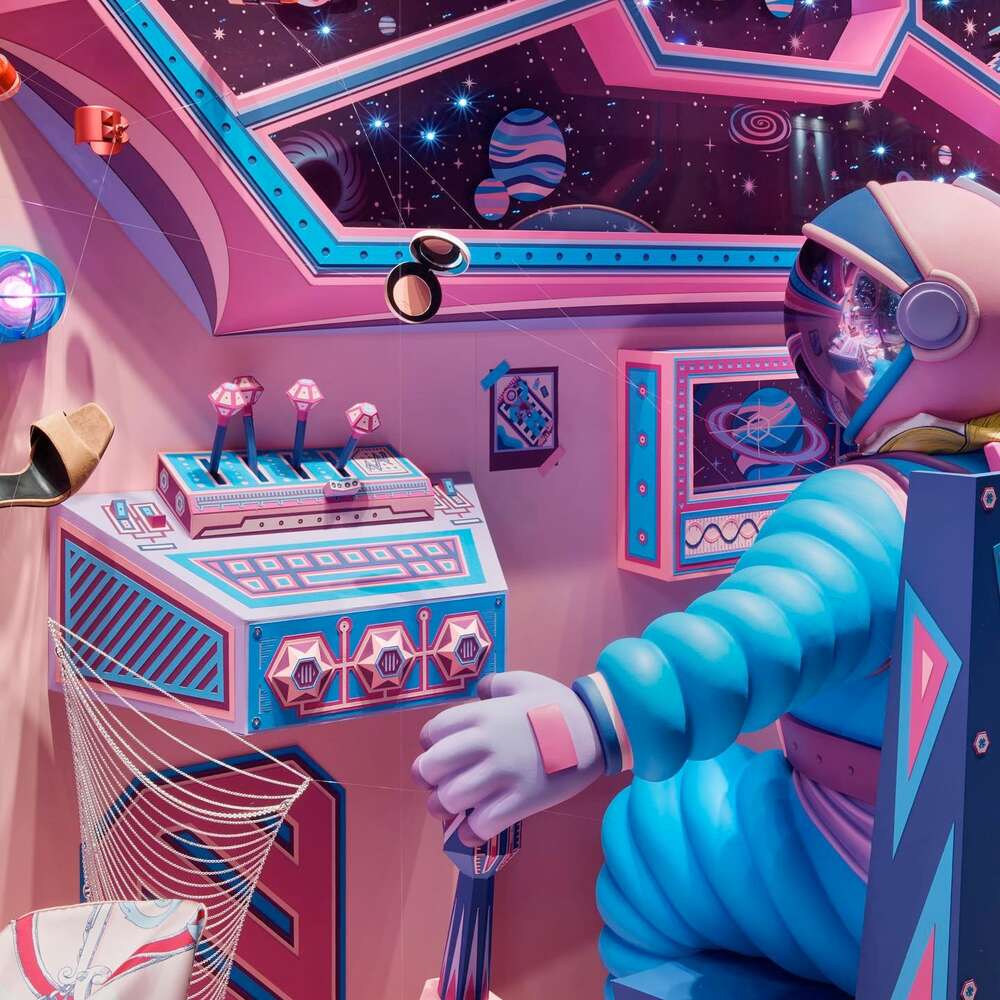 Kumanda kolları, düğme ve gösterge panellerindeki detaylarla hayran bırakan bu yeni tasarım, bir astronotu uzay gemisinde seyahat ederken tasvir ediyor. Renk paletine baktığımızda, Zim & Zou’nun önceki işlerinden de aşina olduğumuz pembe, mavi ve kırmızı tonların hakim olduğunu görüyoruz. Her şey tamamen ve büyük bir özenle kağıttan yapılmış heykellerden oluşuyor. Tasarım, Hermès’in Tokyo’daki mağazasının vitrinine yerleştirilmiş.