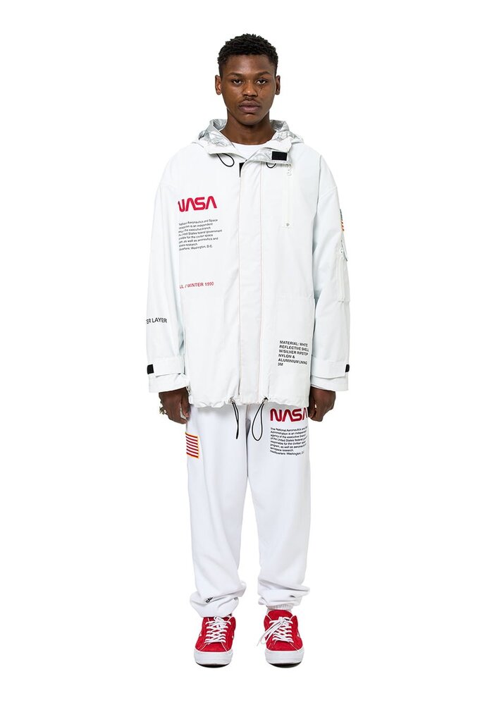 Preston, DSNY koleksiyonu için ilhamı okyanusta yüzerken kendisini bulan bir plastik torbadan aldığını söylüyor. NASA koleksiyonunda ise ilham başka bir atıktan, uzay atıklarından geliyor. NASA’nın yörüngedeki atıklara yönelik araştırma ve izleme odaklı özel bir programı bulunuyor. Zira yörüngemizde kırık uydulardan araçlara, LEGO parçalarından metallere pek çok insan kaynaklı atık var. Ve uzaydaki bu çöpler, uzay yolculuklarının geleceği açısından tehlike arz ediyor. Heron Preston x NASA koleksiyonu, bu konuya dikkat çekmeyi amaçlıyor.