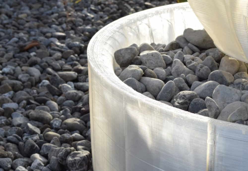 Türbin, çok malzemeli 3B baskının büyük ölçekli ve geri dönüştürülebilir ürünler üretme potansiyelini ortaya koyuyor. Endüstriyel tasarımcı Nicole Hone ile işbirliği içinde geliştirilen Power Pot Plant, çevreyi korurken enerjiyi güvence altına almak için teknolojinin, doğanın ve yenilenebilir kaynakların sorunsuz bir şekilde entegre edilebileceğini gösteriyor. Sürdürülebilir tasarım ilkelerini benimserken aynı zamanda sürdürülebilir enerji çözümlerinin hem estetik açıdan hoş hem de ekolojik açıdan sorumlu olduğu bir geleceğe işaret ediyor.