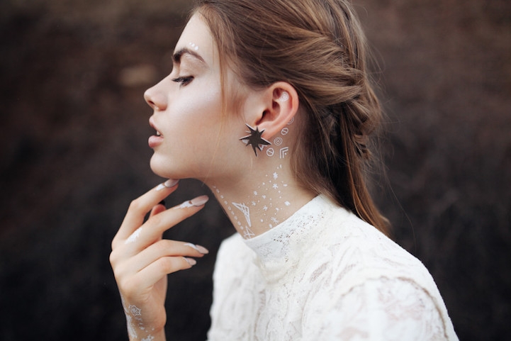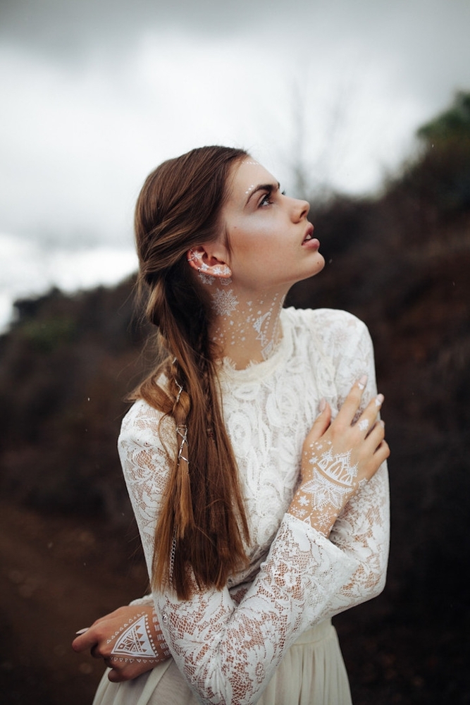 Mr. Kate’in imzasını taşıyan kış konseptli beyaz geçici dövmeler, figürleri, desenleri ve uygulandıkları alanlar itibarıyla, bir zamanlar Türkiye’de de moda olan hint kınasını andırıyor.