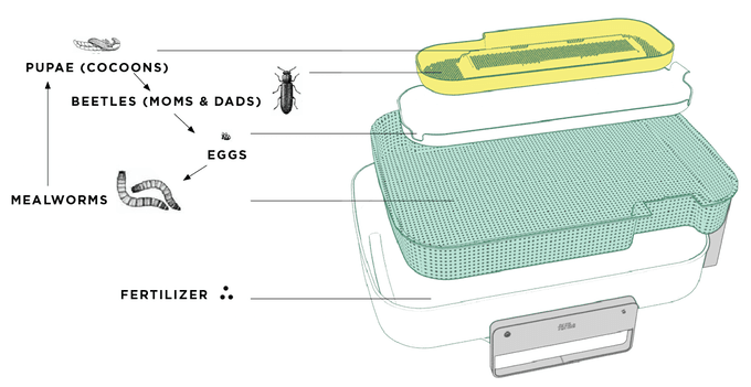 Patates ya da havuç kabukları, elma koçanları, ekmek kırıntıları ve daha aklınıza gelebilecek her türlü gıda atığını akıllı çiftliğinizle dönüştürebilirsiniz. Un kurtları hemen atıklarla beslenmeye başlar ve sürecin gözünüzün hemen önünde gerçekleştiğini görebilirsiniz. Hemen yedikleri için gıda atıkları beklemede kalmaz ve koku yapmaz. Un kurdunun dışkısı, bir toz halinde birikir ve ki da evinizdeki veya bahçenizdeki bitkiler için mükemmel bir gübre.