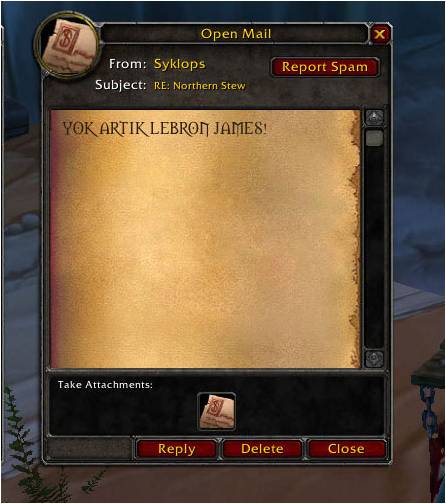 Karakterin özelliği: tahmin edeceğiniz gibi maksimum seviyede ‘cooking skill’e sahip olması. Karakter düzenli olarak oyun içi yemekleri yolluyor. Yenildiğinde karakterlere ekstra güçler veren bu yemekler şu anda yaklaşık 1500 kullanıcının gücüne güç katıyor.