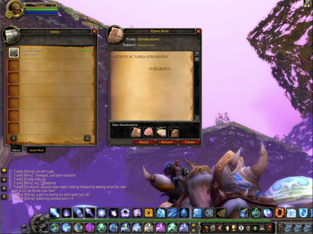Yaklaşık 5 aydır, WOW (kısaca böyle deniyor) içinde yemeksepeti (birleşik ve küçük harfler yazılıyor) isimli bir karakter yaşıyor.