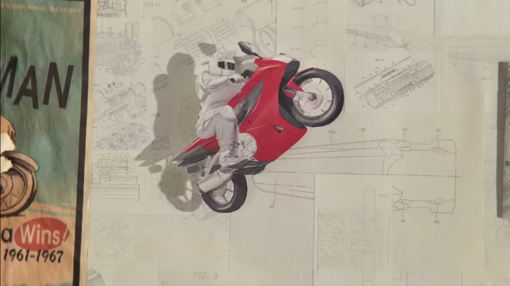 Filmde, Honda’nın kurucusu Soichiro Honda’nın bir radyo jeneratörünü karısının bisikletine güç aktarmak için kullanışına ve Honda’nın motosiklet konusundaki gelişimine referans veren sahneler yer alırken, geçmişten bugüne birçok aracın görüntüsü yer alıyor.