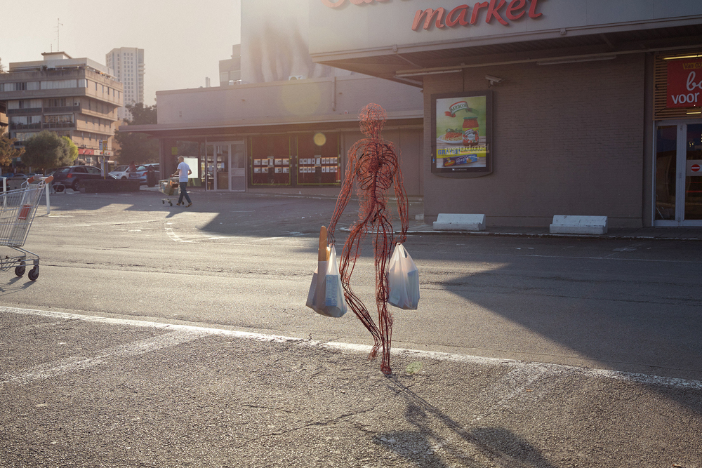 Fotoğrafçı Jan Kriwol ve CGI sanatçısı Markos Kay, Human After All adlı fotoğrafik bir seriye imza attı. İkili bu seride 16. ve 19. yüzyıllar arasında manzaraların içinde tasvir edilen eski anatomik illüstrasyonlardan ilham alıyor. Serideki figürler, kentteki günlük yaşam sahnelerinin bir parçası olarak dolaşım sistemiyle boy gösteriyor. Kimi marketten alışveriş yapıyor, kimi hamburgercide yemeğini yiyor kimi de sigarasını tüttürüyor.