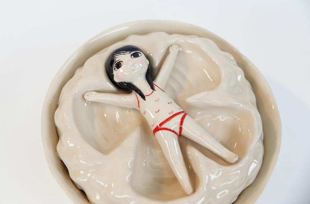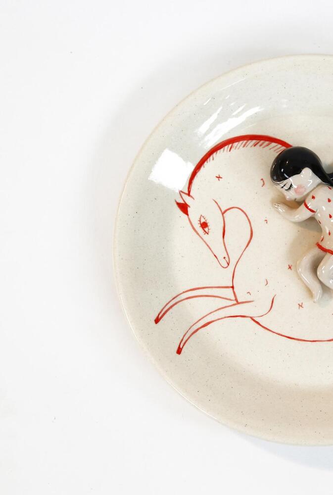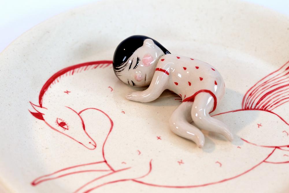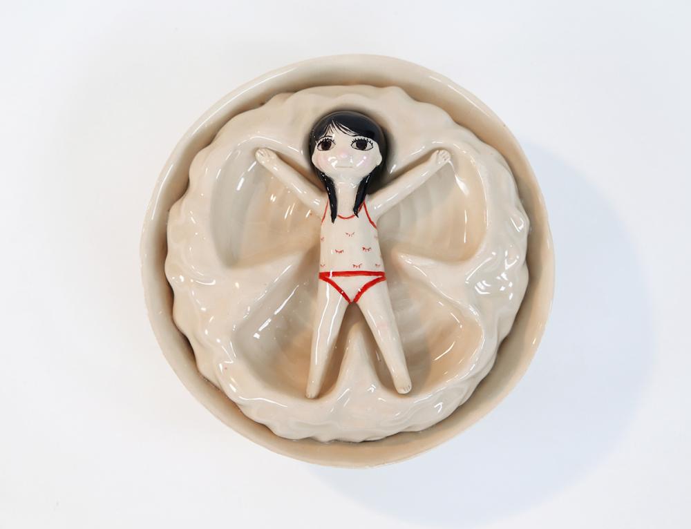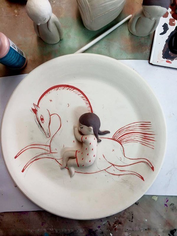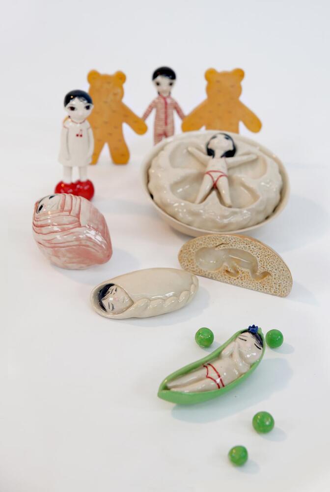 Ödüllü illüstratör Lena Guberman, farklı malzemelerle ve farklı tekniklerle kendini sınamayı seviyor. Profesyonel olarak kitap illüstrasyonları ve karakter tasarımı alanlarında üreten sanatçı, Wrapped başlıklı projesinde 2 boyutlu kağıt yüzeyin dışına taşarak seramikle kendini ifade etmeyi tercih etmiş.