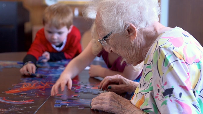 Seattle’da, yaklaşık 400 kişinin yaşamını sürdürdüğü huzurevinin içine açılan anaokulu, kendini hayatın dışında kalmış hisseden yaşlılarla, 1-5 yaş arası küçük çocukları bir araya getirmiş.