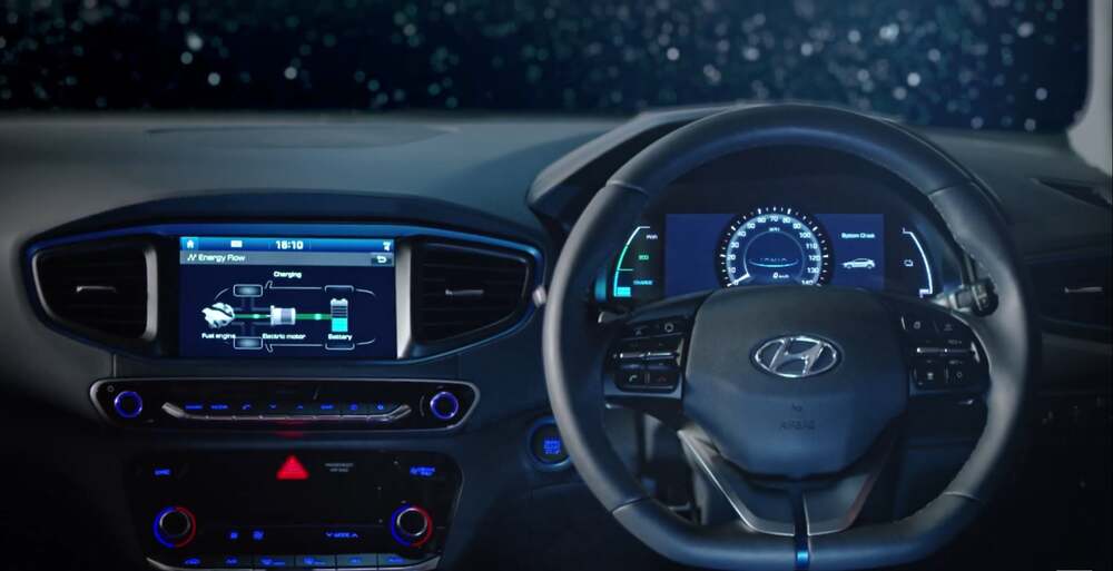 Reklam filmde IONIQ modelindeki hibrit teknoloji sayesinde benzinin gücünün verimli kullanılmasına dikkat çekiliyor. Elektriklenen benzin damlası, getirdiği enerji sayesinde aracı çalıştırıyor. Hibrit otomobillerin motor başlangıcında ve ilk viteslerde elektrik motorundan alınan güç kullanılıyor. Böylelikle fosil yakıt tasarrufu sağlanıyor. Elektrik ve benzin gücünün kaynaşması fosil yakıt tasarrufu sağlarken karbon salınımını da azaltıyor. Reklamda otomobilin ön paneline de yer verilmiş. Panelde bulunan bilgi ekranı akıllı telefonlara bağlanabilir. Ekran sayesinde yürütülen medya içeriğinin yanı sıra hibrit sisteminin durumu da kontrol edilebiliyor.