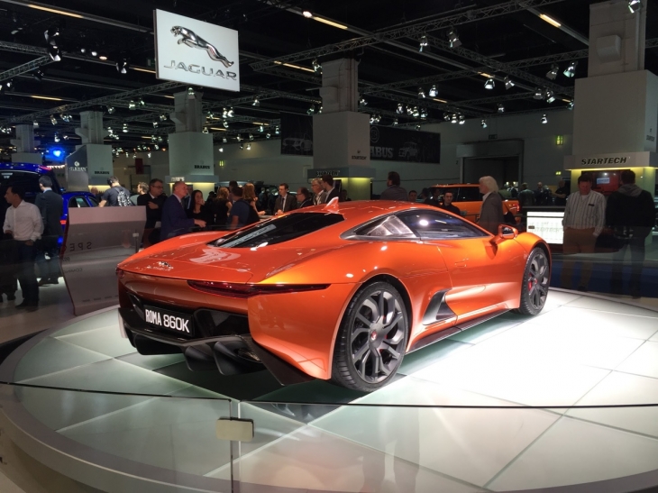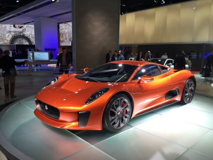 Jaguar’ın ta 2010’da tanıttığı ve çok beğenilmesine rağmen geleceği konusunda kesin karar alınamayan C-X75 konsepti, yıl sonunda gösterime girecek olan yeni 007 Bond filmi Spectre‘da önemli bir takip sahnesinde yer alacak. Jaguar konseptin bu yürüyen versiyonunu fuara getirdi ve 5 yaşında bir tasarım olmasına rağmen araç büyük ilgi çekmeyi başardı.