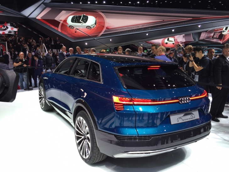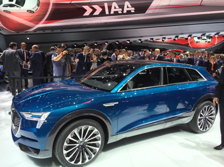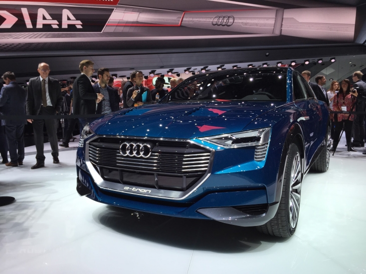 Audi’nin bu yıl tek konsepti e-tron quattro konseptiydi. Bu yıl Audi fuarlarda büyük ve lüks konseptleri sergileyerek geleceğin Audi modellerinin tasarım çizgisini tanıttığı gibi yenilenmesi yaklaşan A8’in de bir ön gösterimini yapmıştı. e-tron quattro’nun da Q6 olarak hayata geçeceği tahmin ediliyor. Elektrikli bir konseptle Q6’nın tanıtılmasında da Tesla’nın önümüzdeki yıl piyasaya süreceği Model X adlı SUV’unun yarattığı beklentinin etkili olduğunu düşünüyorum.