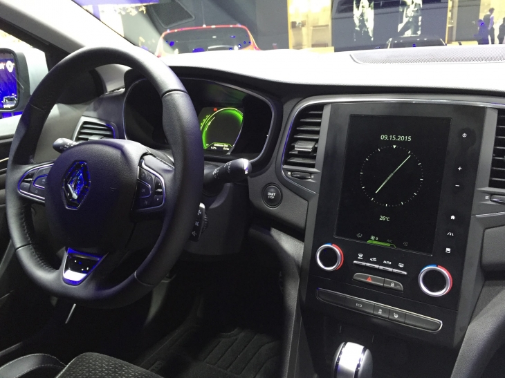 Megane’ın içinde Renault Espace’tan tanıdığımız dikey ekran mevcut. Espace’ınki kadar büyük olmayan ekranın yerleşimi riskli bir karar. Çünkü çok büyük olmayan bu ekran pekala aynı alana yatay olarak da yerleştirilebilirmiş ve yatay konulsa daha büyük algılanabilirmiş. Bu haliyle etrafında çok fazla boşluk var. Tesla’nın dev 17 inç dikey orto konsol ekranından sonra Volvo’nun XC-90’da iPad boyutlarında bir dikey ekran kullanması trendi bu araçla orta sınıfa inmiş oluyor.