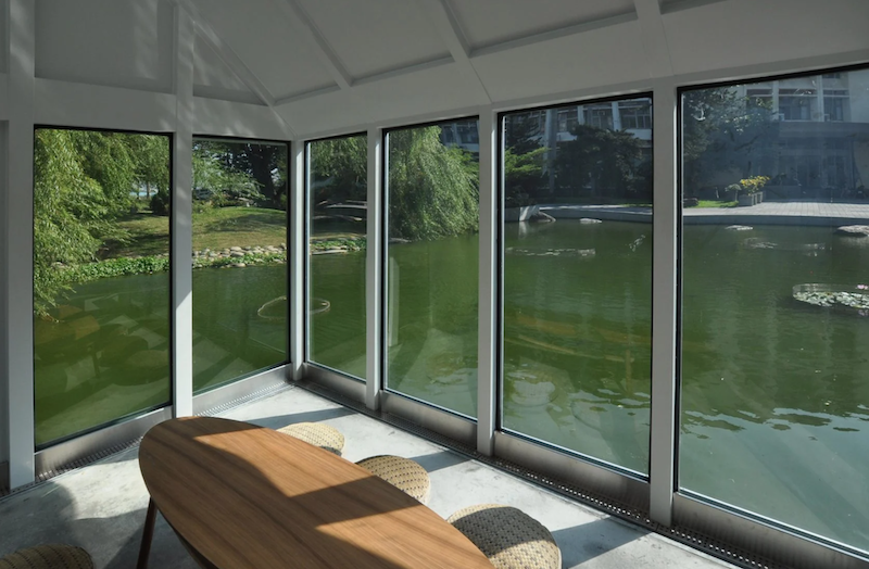 Arasında su olan camlar, termal enerjiyi bu şekilde emerek ve aynı zamanda da pencerelerden binaya giren güneş ısısı da sınırlayarak sıcak havalarda klima ihtiyacını azaltıyor.