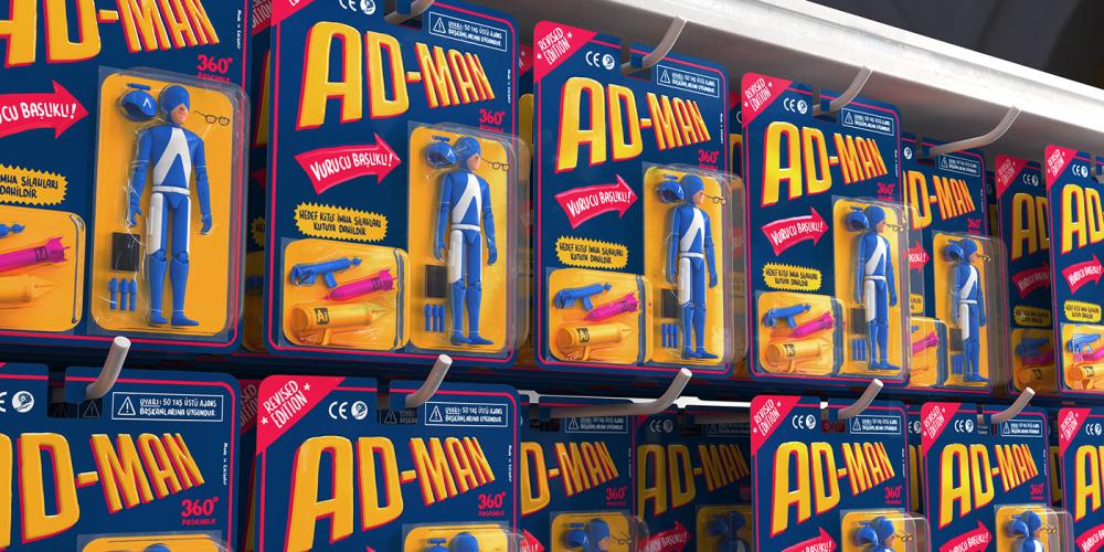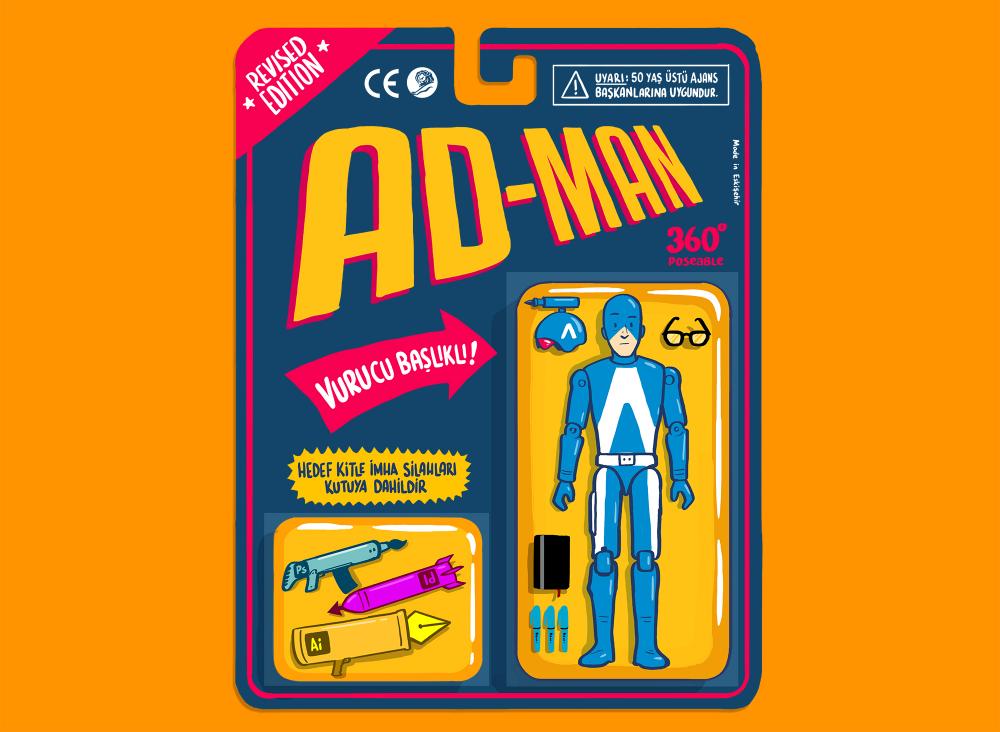MediaCat, Berat Pekmezci‘ye hayalindeki reklamcıyı sorduğunda ortaya Ad-Man çıkmış. Her işi halleden, on parmağında on marifet Ad-Man, oyuncak figür görünümlü bir süper kahraman. Rumble’dan (güncel ismiyle Basthead) Can İnceler de Berat’ın illüstrasyon olarak yarattığı Ad-Man’i 3B modelleyerek ete kemiğe bürüdü. Karakterin geliştirme sürecinde ise tipik figür görüntüsüne sadık kalınmış.