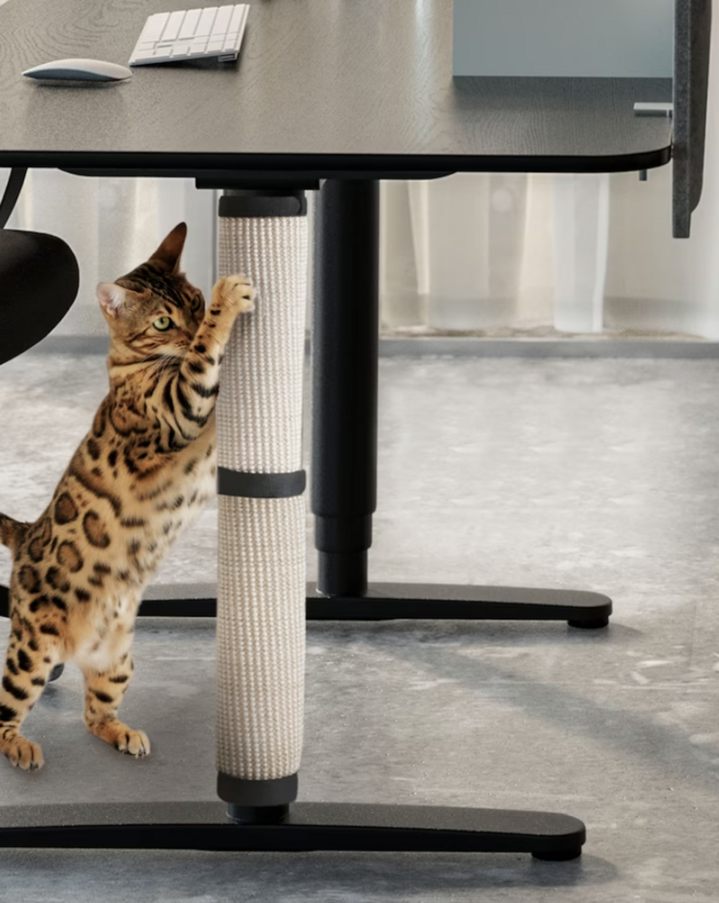 Evcil hayvanların artık tüm gün evde insanlarını görmeye alışması ve uzaktan çalışma kültürünün şirketlere biraz daha anlayışlı olmayı öğretmesiyle IKEA, bazı ofislerin evcil hayvanlara daha açık hale gelmiş olabileceğini öngörüyor. Tüylü dostlarını ofise götürmek isteyenler için masa ayağına takılan kaşıma matını öneriyor.
