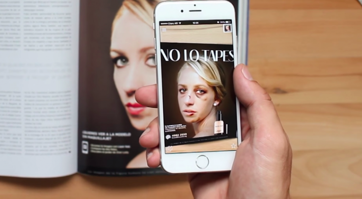 İlandaki makyajlı kadın fotoğrafını akıllı telefonlarıyla tarayanlar, karşılarında gerçek bir şiddet mağduru olan Victoria Montenegro’nun dayaktan şişmiş, morluklar içindeki yüzünü buluyorlar. Montenegro’nun, kadınları sessiz kalmamaya davet eden konuşması bitince, ihtiyacı olan kadınlar çıkan telefon numarasıyla direkt olarak yardım almaya yönlendiriliyorlar.