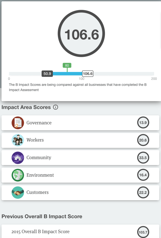 Fairphone’un en önemli özelliği, sonradan “iyi şirket” olma yoluna girmek yerine daha kurulduğu 2013 yılından itibaren iyi bir şirket ve sosyal bir girişim olarak yapılandırılması. İyi bir sosyal etki yaratmak da zaten şirketin temel misyonu. Yine de B Corp sertifikası almak için 2 yıl boyunca yoğun bir çalışma yapmış şirket. Daha sertifikayı aldığı 2015 yılında bile B Etki Değerlendirmesi raporundaki iyilik puanının (Overall B Impact Score) 103,7 olduğunu görüyoruz. Üstelik şirket yerinde saymamış. Bugün bu puanın 106,6’ya yükselmiş olduğu görülüyor.