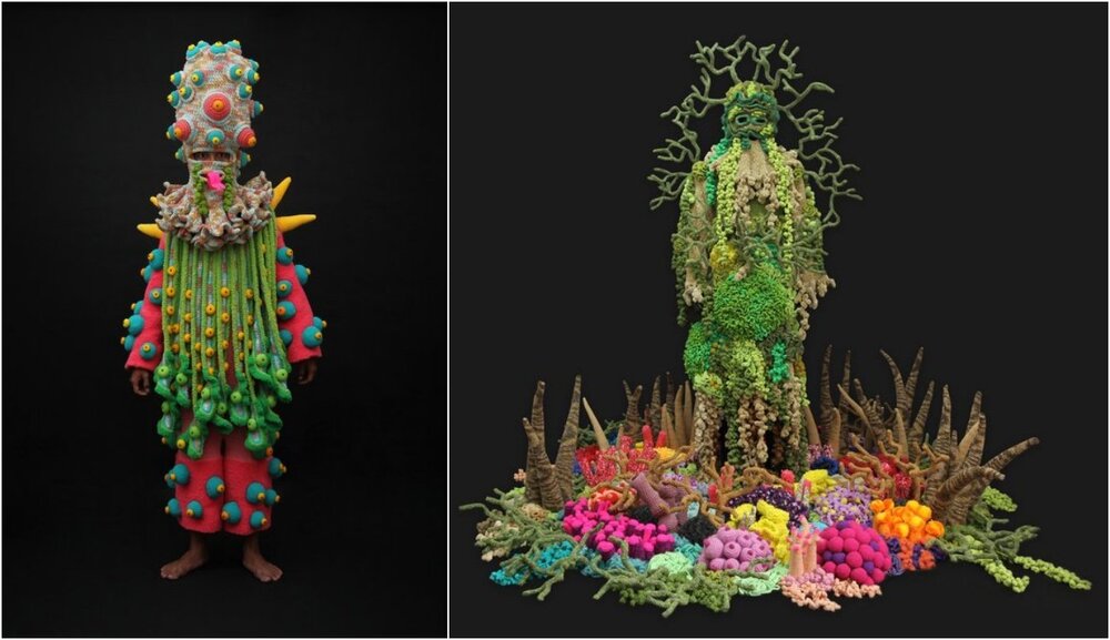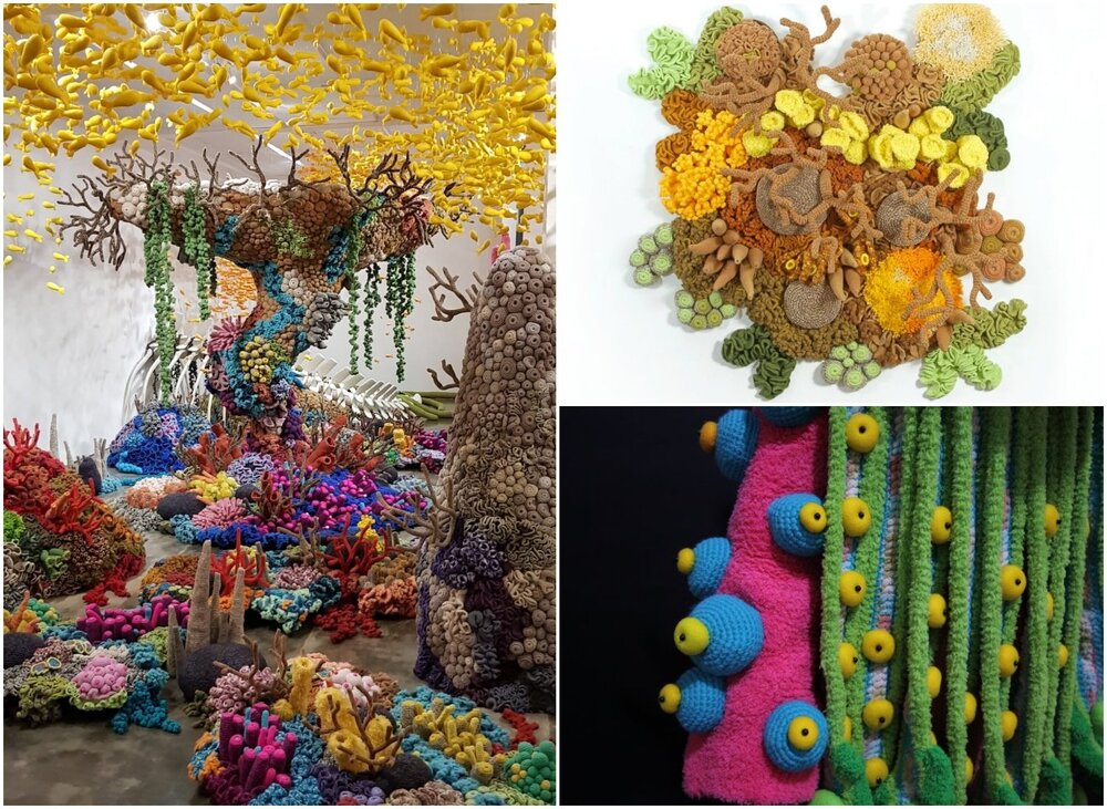Mulyana, su altındaki yaşamı temsil eden etkileyici örgü ve tığ işleriyle biliniyor. Sanatçının daha önceden ahtapotlar başta olmak üzere okyanus canlılarını konu edindiği eserlerini sizlerle paylaşmıştık. Mulyana’nın kişisel sergisi Fragile Ecologies de yine okyanusun derinliklerin ilham alan yaratımlar içeriyor.