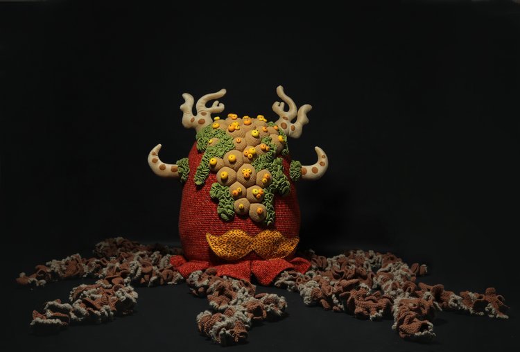 Mulyana, bu karakterleri yaratırken doğal yaşamın izlerine fantastik dokunuşlar yapıyor. Ahtapot başlıklı kostümün de her tarafında gözler ve puantiyeler bulunuyor. Sanatçının önceki işlerinde de görebileceğiniz gibi en çok ördüğü canlıların başında ahtapot geliyor ve bu üretim Mulyana’nın adeta imzası oluyor.