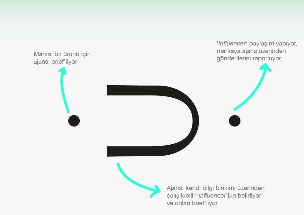 Geleneksel olarak tabir edebileceğimiz influencer marketing sisteminde marka bir ürünü için ajansa bilgi veriyor. Ajans da kendi havuzu içerisinden bu ürün özelinde çalışılabilecek influencer’ları belirliyor. Tabii bu sistemde influencer seçilen kişiyi takip eden kitlenin ürün için tamamen uygun olup olmadığı bilinmiyor. Yapılan iletişim ölçülemiyor veya detaylı olarak raporlanamıyor.