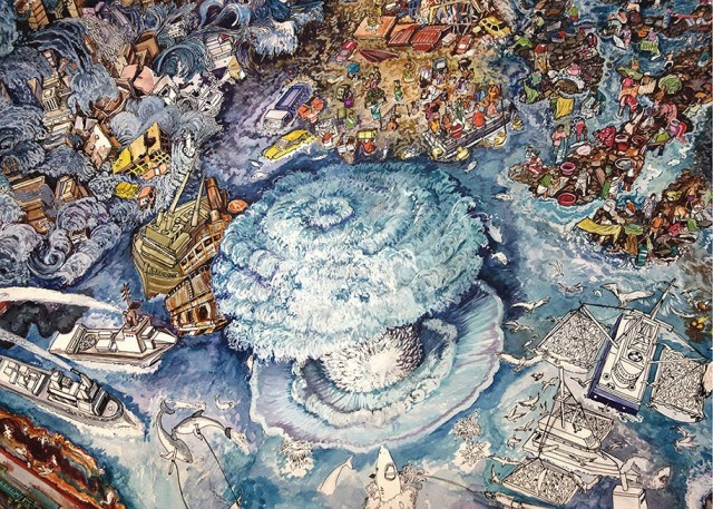 Üzerinde İronik bir şekilde Yin-Yang sembolü bulunan çizimlerin verdiği mesaj net: “Bring Back The Balance”- “Dünyanın Dengesini Geri Getirin”.