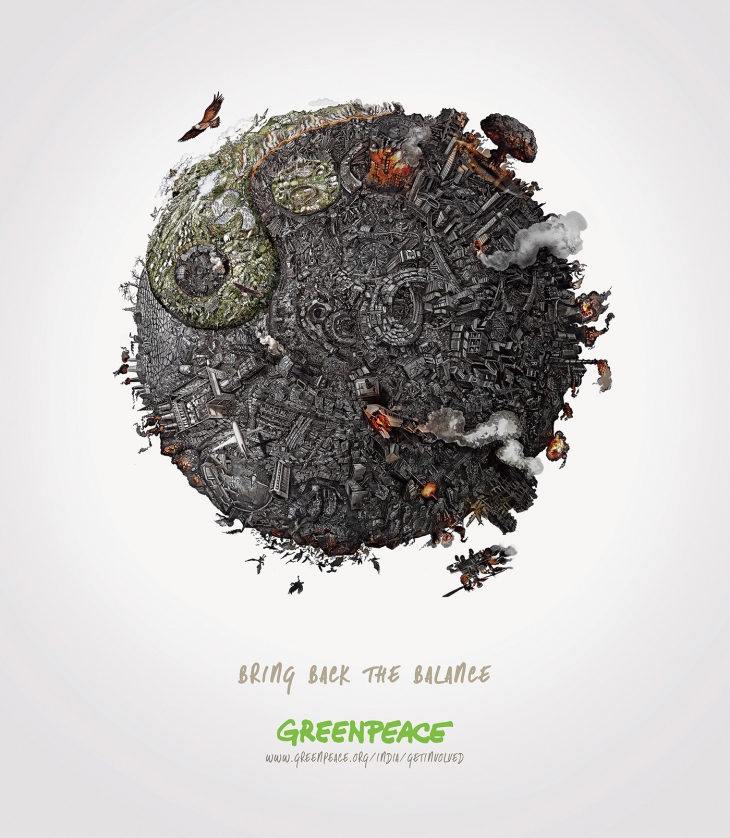 McCann Hindistan tarafından Greenpeace için hazırlanan kampanyada hızlı sanayileşmenin çevre üzerindeki olumsuz etkileri resmedilerek anlatılmış.