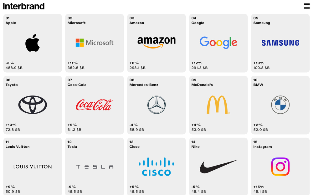 New York merkezli küresel marka danışmanlığı şirketi Interbrand’ın 2000’den bu yana yayınladığı En İyi Küresel Markalar (Best Global Brands) sıralama ve raporunu yayımladı. Sıralamayı ayrıştıran faktör değerlendirmenin şirket değil marka özelinde gerçekleşiyor olması. Böylece aynı çatı altındaki farklı markalar listede kendilerine yer edinirken hisse değerleri tavan yapan şirketlerin marka olarak aynı pozisyonu koruyamadığı görülüyor.
