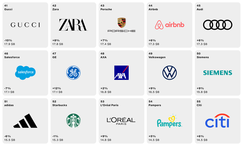 2000 yılından bu yana devam eden rapor ve araştırmada şu ana kadar 185 marka yer almış. Kodak, Nokia, Heinz, AOL gibi markalarla birlikte toplam 85 marka zaman içerisinde gözden kayboldu. Yıllar içerisinde listede kalmayı başaran sadece 35 marka olurken her zaman ilk 10’da olmayı başaran sadece iki marka olmuş: Microsoft ve Coca-Cola.