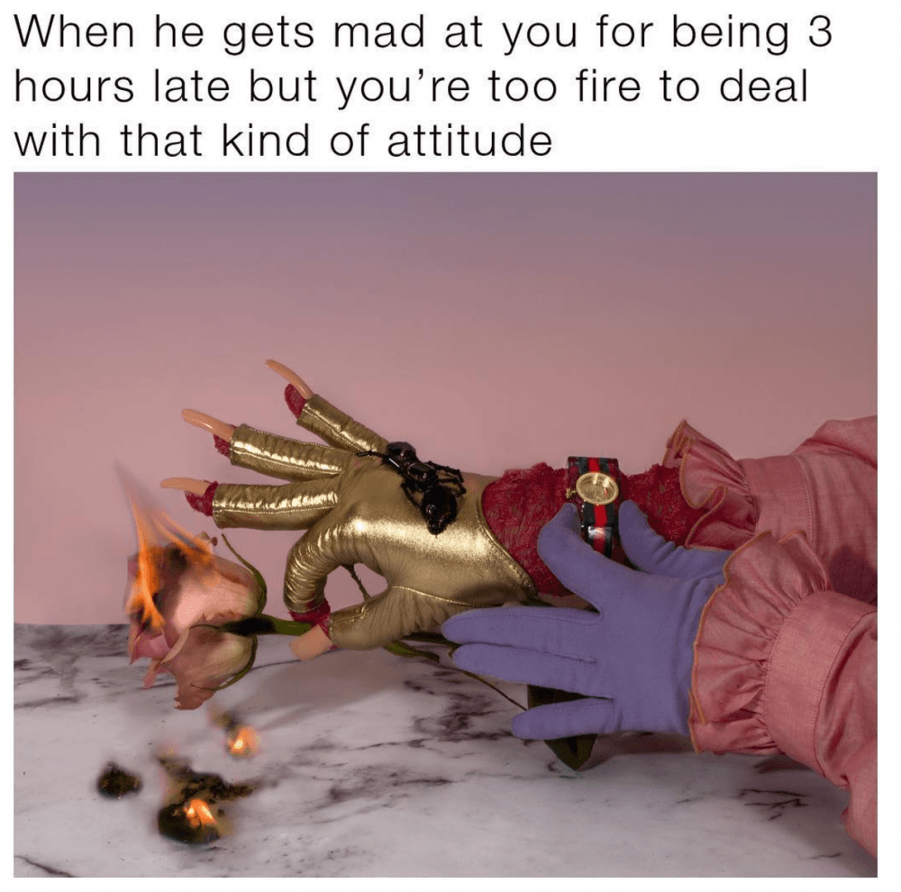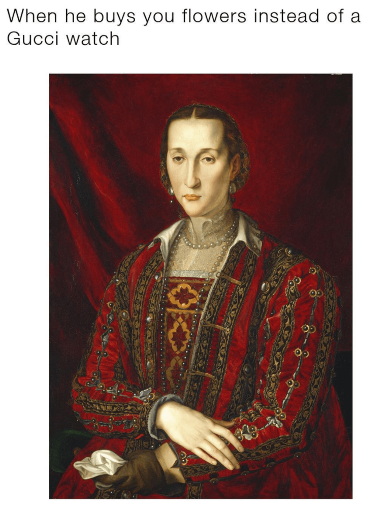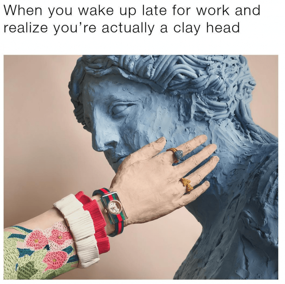 Mimleri yaratmak için seçilen sosyal medya kullanıcıları çoğumuzun bildiği, çok yüksek takipçili isimler. Örneğin, varoluşsal esprilerle görselleri birleştiren, 350 bine yakın takipçisiyle textsfromyourexistentialist gibi. Ortaya çıkan çalışmalar ise zaman zaman komik, zaman zaman tuhaf. Her mimde olduğu gibi, burada da çalışan işler de var, o kadar başarılı olmayanlar da. Oluşan seçki doğal olarak oldukça zengin. Yaratılan onlarca mimi Gucci’nin hesabından, mikrosite üzerinden veya etiket aracılığıyla dolaşmak mümkün. Koluna saat takmış bir köpekten memnuniyetsiz ifadeli bir rönesans tablosu kadınına pek çok farklı görsel; bazen görüntüyle tezat, bazen görüntüyü tamamlayan başlıklarla sosyal platformlarda.