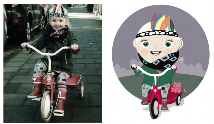 İllüstratör Maria Jose Da Luz, internette gezerken karşısına çıkan hoş ve tatlı çocuk fotoğraflarını alıp yepyeni bir dünyada canlandırıyor. Ele aldığı fotoğrafları çizgi film tarzında dijital olarak çizilip yeniden çocukların beğenisine sunuyor.