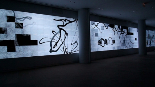 Inkspaces, New York Üniversitesi öğrencisi Adrià Navarro‘nun 3 iPad’ı 36.5 metrelik bir ekrana bağlayıp gerçekleştirdiği sanat projesi, enstalasyon New York’taki InterActive Corps binasında yapılmış. Tabletlerle rastgele çizimler yapan sanatçı grubu, çizimlerini dev boyutlarda karşılarındaki duvarda görmüşler. Navarro için projenin amacı çizimi bir performans gibi düşünmek.