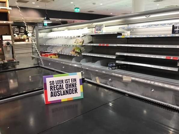 Hamburg’daki Edeka mağazası, yurt dışında üretilmiş ürünleri kaldırarak raflarda bu ürünlerin bulunduğu yerlere zenofobi (yabancı düşmanlığı/korkusu) karşıtı sloganlar yerleştirdi. Bir tek mağaza ile başlayan bu hareket, Almanya’nın en büyük süpermarket zinciri olan Edeka’nın diğer mağazalarına da yayılacak ve dev bir kampanyaya dönüşecek gibi görünüyor.