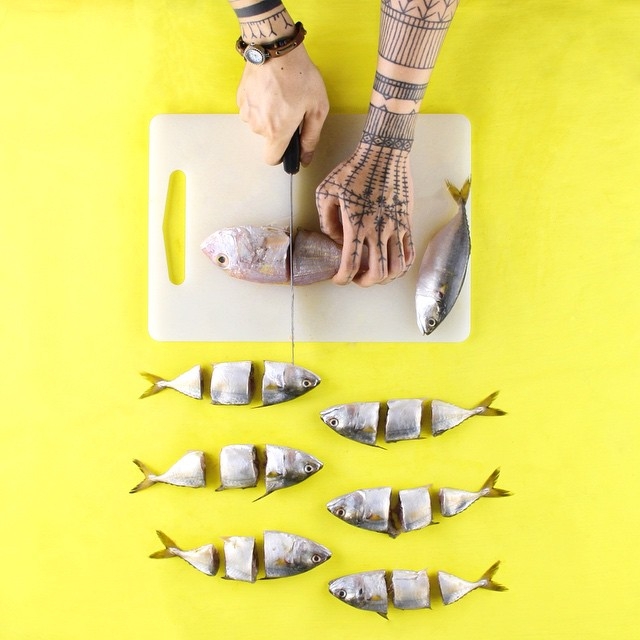 Endonezyalı sanatçı Romo Jack’in #Whatmyhandsdoing isimli projesi için çektiği fotoğrafların her birinde sanatçının yaptığı çeşitli aktiviteleri yukarıdan çekilmiş kareler içinde görüyoruz: Resim yaparken, balık ayıklarken, bilgisayar başında çalışırken, yumurta seçerken, porselen boyarken, dövme yaparken…