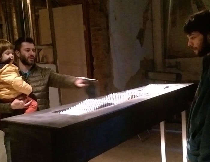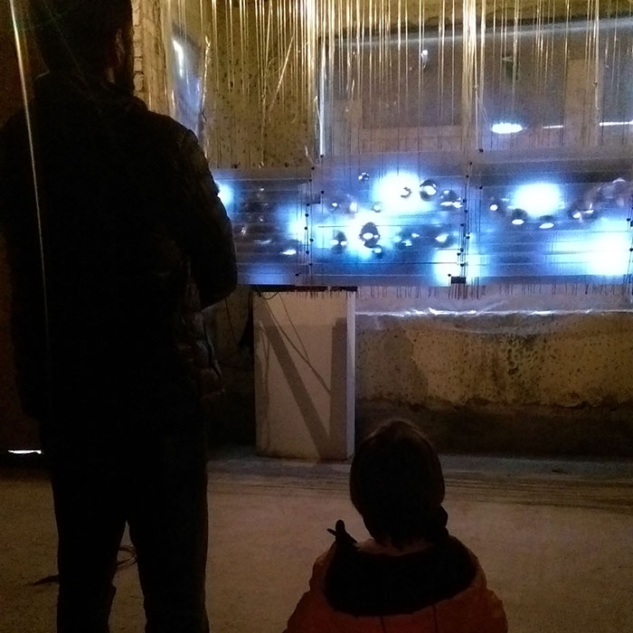 Kapıdan içeri giriyoruz ve peş peşe interaktif ışık, ses, video çalışmaları bizi şaşkına uğratıyor. Sergiden çok keyif aldım. Bunun nedenlerinden biri de sanırım 3 yaşında meraklı bir çift göz ile gezmiş olmak. Farketmeyeceğim, bir çok detayı bu minik adam sayesinde farkettim. Şansınız varsa yanınızda bir bıdık alıp gidin.