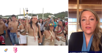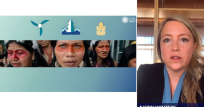 Winters konuşmasında Amazon yağmur ormanlarında Waorani Ulusu’ndan Nemonte Nenquimo’ya da yer verdi. Nemone ve topluluğunun dirayetinin, 500.000 dönümlük Amazon yağmur ormanını kurtardığını söyleyen Winters; bu davanın 7 milyon dönümlük başka bir alanı petrol müzayedelerinden korumak için yasal bir emsal teşkil ettiğini belirtiyor.