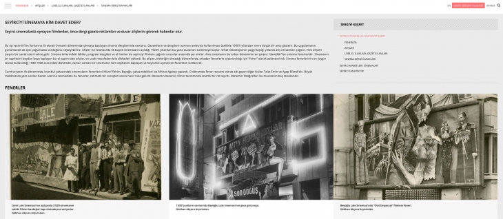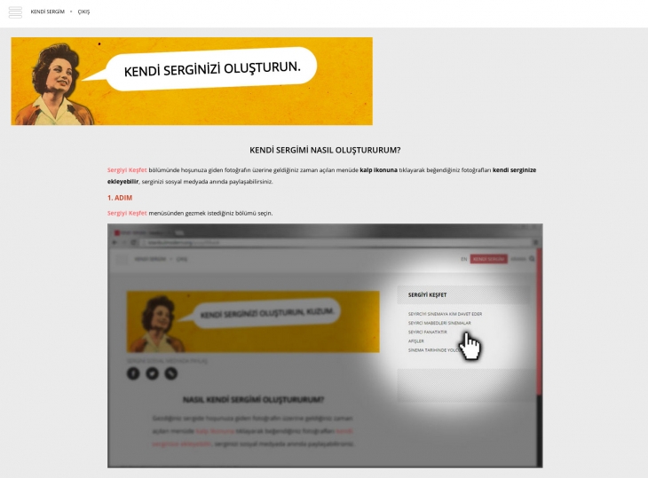 Seyirciler ve katılımcılara ilk kez gösterilen fotoğraflar, gazete ilanları, biletler, dergi kapakları gibi geniş bir arşiv ile özel koleksiyonlardaki eserler de yer alıyor. Bu parçalar, sergiyle beraber dijital dünyaya aktarılınca ziyaretçilerin de etkileşime girmesine olanak tanıdı. Her ziyaretçi kendi beğenisine göre sergisini hazırlayıp sosyal medyada paylaşabiliyor. İstanbul Modern, sanatı ve sinema tarihini etkili bir platformla sunuyor.