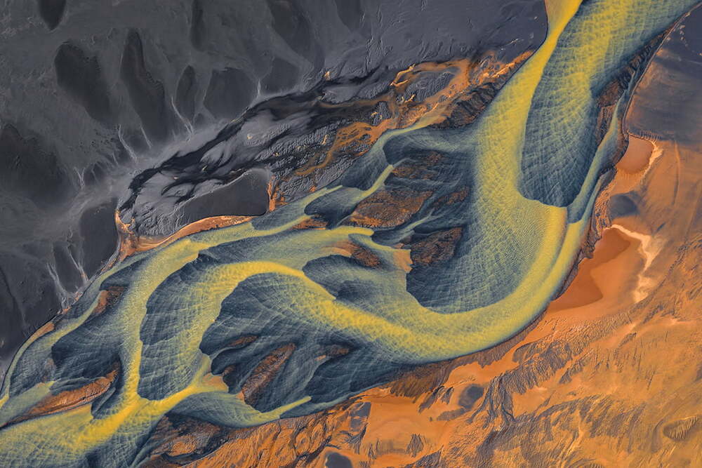 Grönland, Norveç, İzlanda ve Antarktika gibi kuzey bölgeleri Jan Erik Waider’nın soyut fotoğraf serilerinde keşif yapmayı sevdiği alanların başında geliyor. İzlanda’da havadan çektiği soyut manzara fotoğrafları A Colorful Flow serisinde bir araya geliyor. Soğuk renklerin ağırlıkta olduğu bu seride kuşbakışı çekilen manzara fotoğraflarındaki doğanın kıvrımlı hatları yüzeyi belirginsizleştiriyor. Ortaya neresi olduğu belli olmayan ama sakinleştiren ve huzur veren fotoğraflar çıkıyor.